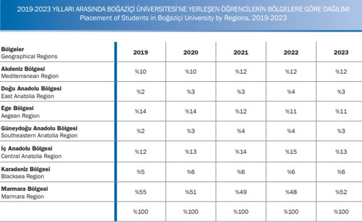 Boğaziçi University publishes various statistical and activity reports every year, providing information about the opportunities and services offered by the university to various student groups. These reports contain comprehensive data on the distribution of academic and administrative staff, student diversity, regulations and measures taken for students with disabilities. Through these reports, the University aims to ensure transparency and equal opportunity in the student admission process.