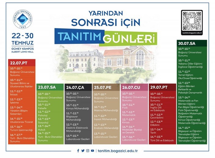 Within the scope of the "Boğaziçi University Introduction Days ’ programme, which is organised every year for prospective students who will make university choices, prospective students and their families have the opportunity to visit the campus, meet the faculty members, get information about the undergraduate programmes offered by the departments and take a campus tour. In addition, secondary education institutions can make a special application during the semester and organise visits that enable their students to get to know the academic and social opportunities of Boğaziçi University.