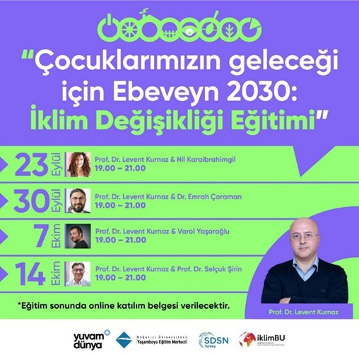 The training, organised in partnership with Yuvam Dünya, İklimBU, BÜYEM and UN SDSN Turkey, aims to raise awareness of parents about the climate crisis and future challenges, to convey these challenges to their children in the language of hope, and to provide them with the knowledge, skills and emotional resilience for the innovative solutions they will need to cope with the climate crisis.