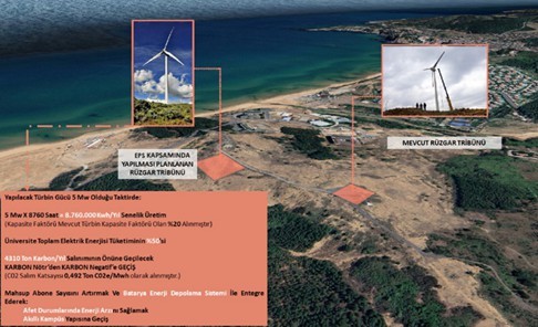 - The 5 MW wind turbine, which is planned to be added to the campus, is expected to meet 50% of the total electricity consumption of the university and will prevent 4310 tonnes of carbon emissions per year and transition the campus from carbon neutral to carbon negative status.