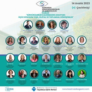 The Corporate Sustainability and Responsibility Summit, which is organised with a different theme every year in cooperation with UN SDSN and BÜYEM, of which Boğaziçi University is the country coordinator, brings together expert academics, business people, government and NGO representatives. These summits provide an opportunity to share expert opinions with decision-makers and discuss policy recommendations. The theme of the 5th summit held on 14 December 2023 was ‘Triple Transformation’.
