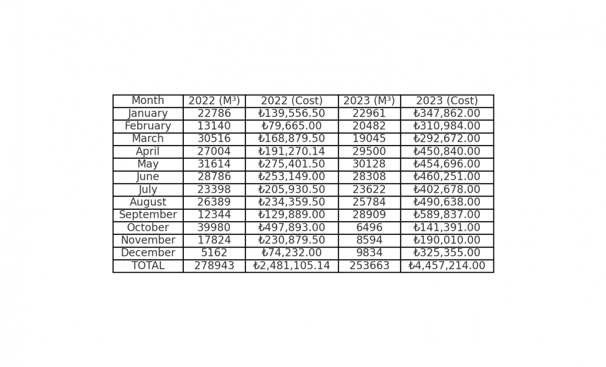 Boğaziçi University Water Consumption Data (m3) 2022-2023