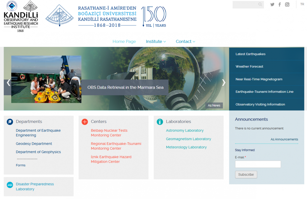 - Boğaziçi University's Kandilli Observatory and Earthquake Research Institute