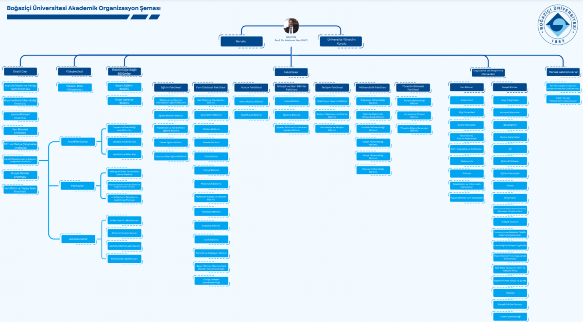 The academic organisation chart of our university clearly reveals the place of interdisciplinary institutes and departments within the administrative structure and shows that these units are in an equivalent position with other academic units in terms of institutional functioning.